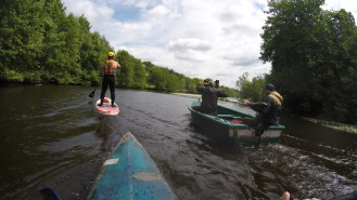 Le tournage débute au pied du barrage de l'Age à La Celle Dunoise avec 3 canoës, 2 planches et 1 paddle